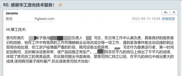 點(diǎn)贊!華工激光收到來自各地客戶的感謝信
