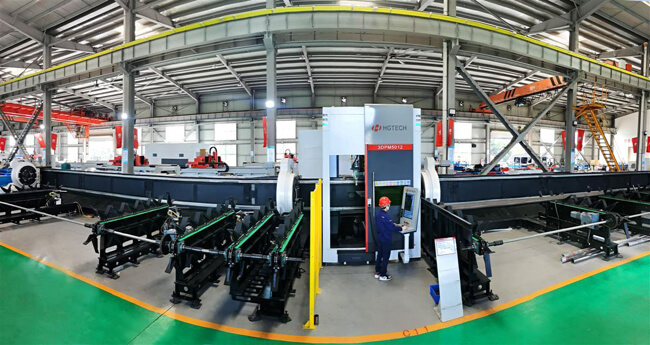 華工激光總經(jīng)理鄧家科介紹,它的最大加工管徑為0.5米,最大加工長(zhǎng)度12米,單根管材最大載重2.7噸,通過(guò)全自動(dòng)激光切割,可以實(shí)現(xiàn)送料、切割、搬出高度自動(dòng)化,解決了超大、超重、超長(zhǎng)管材在加工中工序繁瑣、轉(zhuǎn)運(yùn)困難、耗時(shí)費(fèi)力等痛點(diǎn),“用一套設(shè)備替代了過(guò)去的一座工廠。”