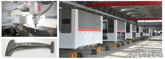 主要應用于汽車熱成形領域,解決了高強鋼難沖壓的問題,替代了大量的沖孔模和修邊模,可以說是削鐵如泥,適用于批量連續(xù)作業(yè),可大幅降低產(chǎn)品開發(fā)周期及模具成本。和傳統(tǒng)機器人三維切割相比,切割精度高、速度快,斷面更平滑。
