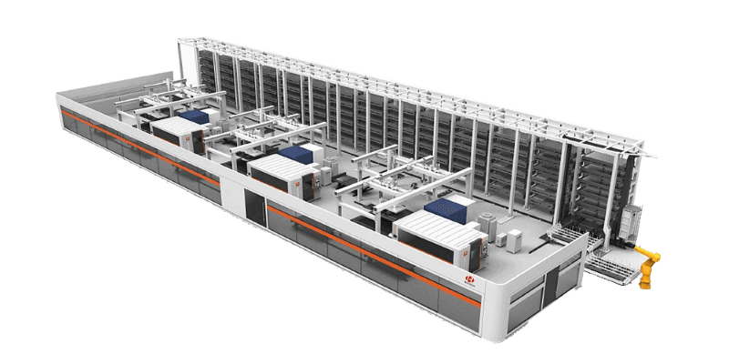 實現(xiàn)物料立體存儲,自動出入庫,配套數(shù)控沖床、激光切割機、數(shù)控折彎機等鈑金設(shè)備